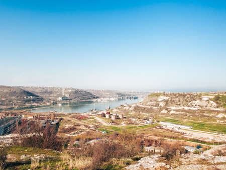 Top view on the evening city of Khust, Transcarpathia Ukraine.