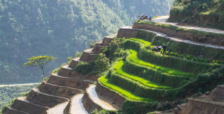 Terraced rice fields in Sapa, Vietnam. Sapa is a popular travel destination .ai generated