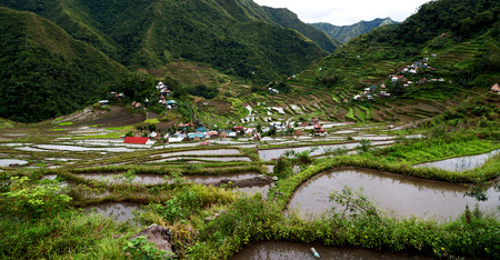 View of rice terraces fields in Banaue, Philippines. The Banaue rice terraces are UNESCO world heritage site since 1995
