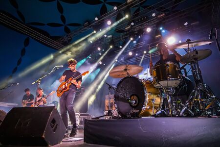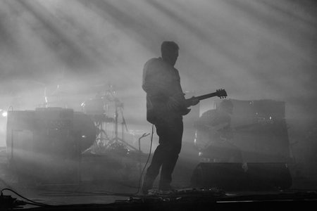SIBIU, ROMANIA - JULY 27, 2019: Norwegian alternative rock band Madrugada performing a live concert on the stage at Artmania Festival
