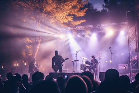 A band performs on stage during a music festival, Generative AI
