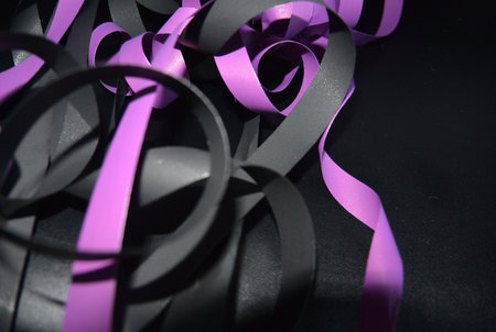 Colored rubber bands on a black background. Selective focus.