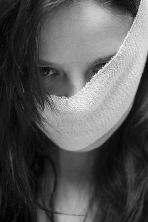 young woman's face covered by a veil