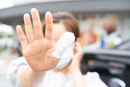 Portrait of a young woman with a bandage on her face