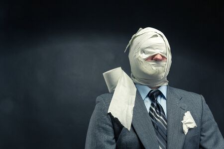 man with head in a bandage isolated with clipping path at this size