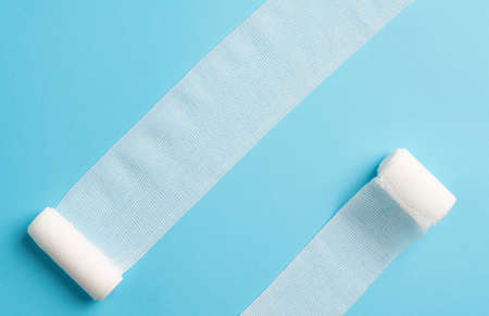 Bandage used for injuries during work, leisure time or in housework, isolated on glossy black background