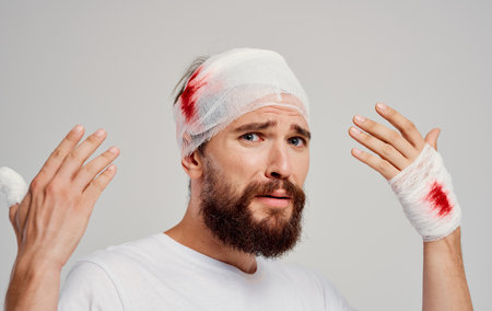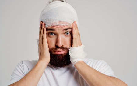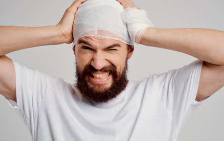 bearded man in a white t-shirt trauma health diagnosis isolated background