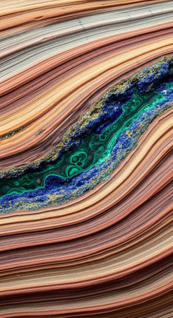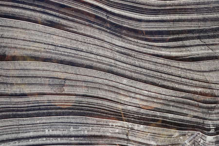 Close-up of layered rock surface with wavy textures and natural marbled patterns