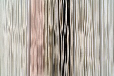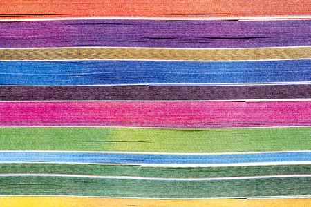Close up of curved sheets of colored paper. Colorful craft and office supplies concept.