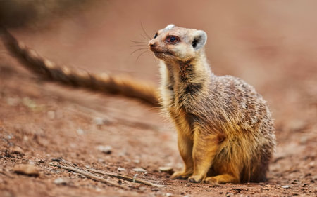 A young mongoose in a desert setting - very cute.