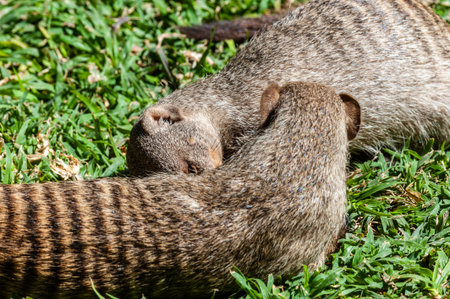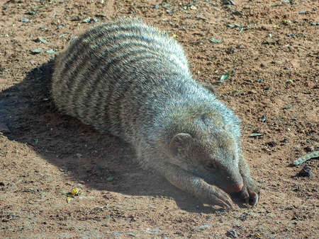 Banded mongoose (mungos mungo) resting in the sun.