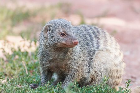 Closeup portrait of a banded mongoose, Adorable tropical animal specie from africa, popular pets