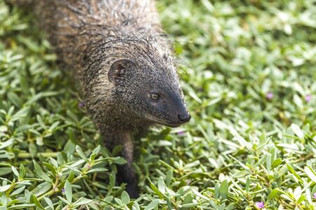 Ferocious mongoose (pharaoh mouse) in its natural habitat. Close-up.