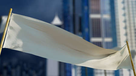 White, blue and red flags waving in the wind, blue sky background