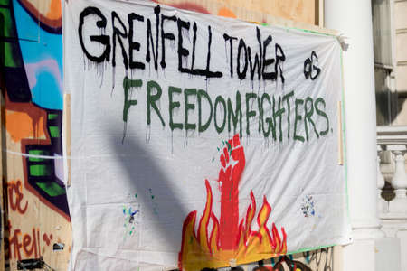 London, United Kingdom - August 27, 2017. Notting Hill Carnival one of the largest street parties in Europe is now in its 51st year. This year was close to the ruin of Grenfell Tower scene of a devastaing fire.