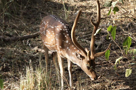 Young male of chital Axis axis. Gir Sanctuary. Gujarat. India.