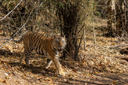 Wild bengal tiger on prowl at bandhavgarh national park or tiger reserve madhya pradesh india - panthera tigris tigris