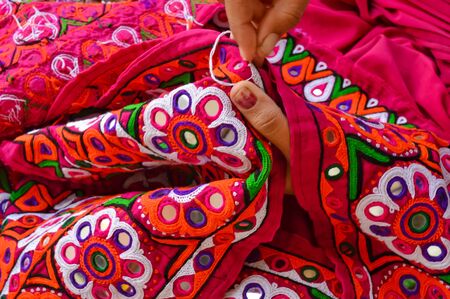Indian patchwork detail, traditional handicraft handmade. decorative fabrics.