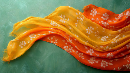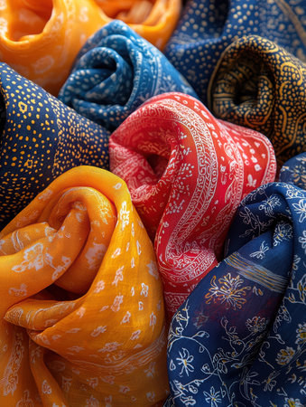 Vibrant multicolored fabric with ornate floral patterns and detailed textures. That the image is generated using AI.