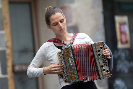 AURILLAC, FRANCE - AUGUST 24: an accordion player in the street as part of the Aurillac International Street Theater Festival, show by Die Kurbe, on august 24, 2012, in Aurillac,France.
