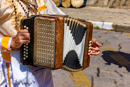 Accordionist with his instrument at the Congado festival in Minas Gerais