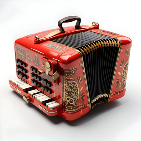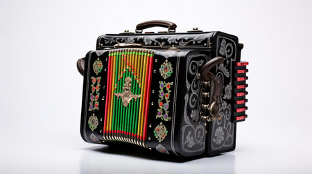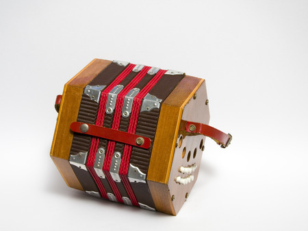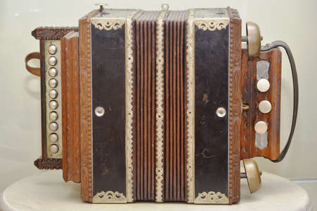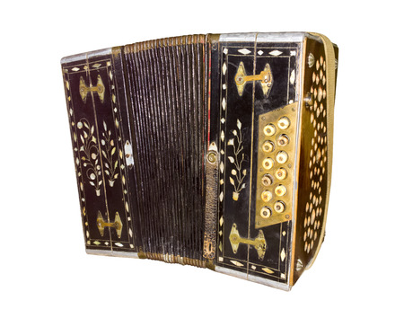 Old accordion isolated. Vintage harmonic. Retro button accordion musical instrument