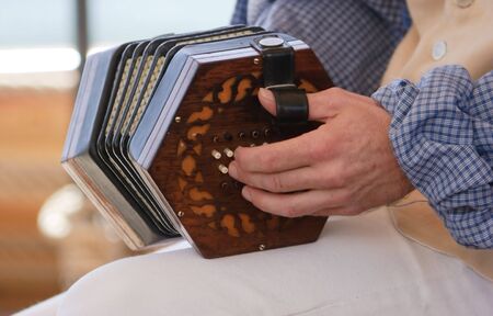 Playing the bandoneon, traditional tango instrument, Argentina.