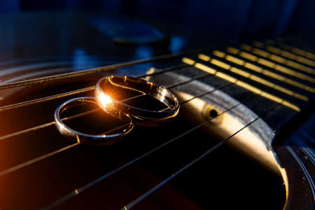 The guitarist plays the guitar in the spotlight. Hands of a Guitar player playing the guitar. Selective focus. Soft focus