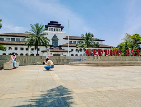Bandung, West Java, Indonesia - Sunday, October 10, 2021:Gedung Sate, a historic building in the center of Bandung, Indonesia.