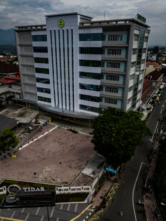 Bandung, Indonesia - October 2017 : Bandung city traffic in the central area street, downtown view. Bandung is capital of Indonesia's West Java province.