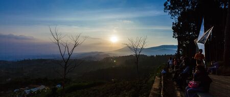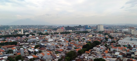 Little village on top of the hill and scenery of bandung city from faraway, captured from Moko Hills when weather is sunny, Bandung, Indonesia
