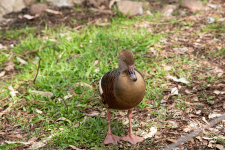 the Cape Barren Goose is walking through a field