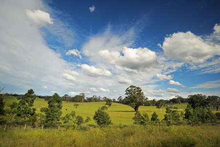 typical rural scenery in Australia, with beautiful clouds in blue sky
