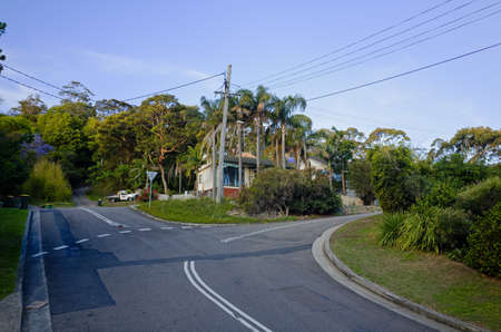 Beautiful suburban Australia street with residential building and palm trees. Suburb of Brookvale in the Northern Beaches area of Sydney, New South Wales, Australia
