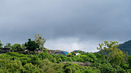 Airlie Beach, Queensland, Australia - February 2021: Homes high on the bushy hillside to capture the ocean views