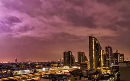 abstract scene of lighting flash in night sky with cityscape - can use to display or montage on product