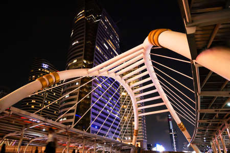Bangkok,Thailand - 28 June 2014: Night time at Chong Nonsi skywalk Bangkok skytrain station (BTS) in Bangkok, Thailand. Chong Nonsi Station is a skytrain station at Bang Rak District.