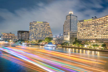 Cityscape chao Phraya river at night in Bangkok ,Thailand.