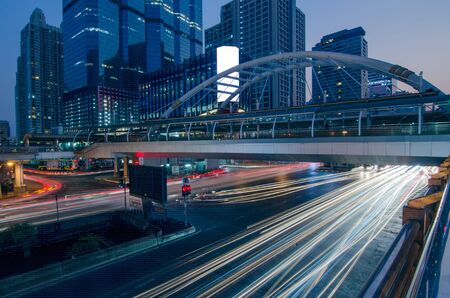 Views of the capital bangkok traffic at twilight period,ciyt bangkok Thailand