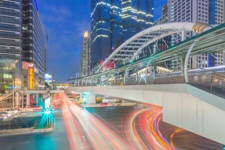 Light trails on the street at dusk in Bangkok,Thailand.
