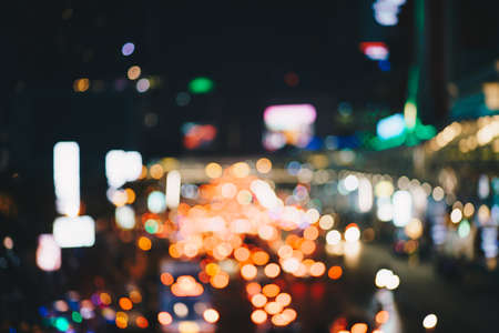 Abstract bokeh blurred in downtown city road with car tonned image Bangkok Thailand