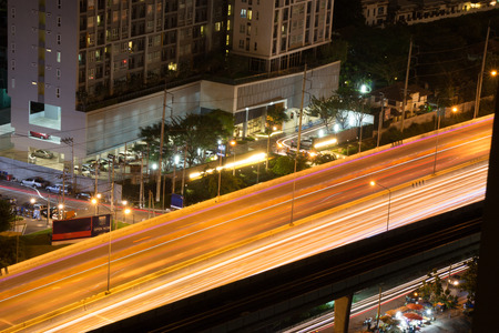 Expressway arial view during night with light trail, Bang Na, Bangkok Thailand