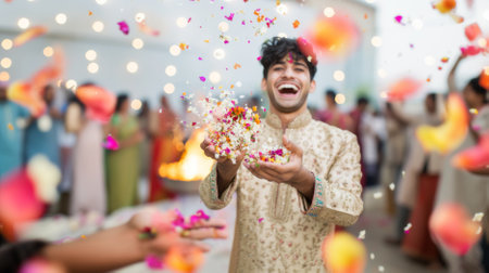Kolkata, India - March 21st, 2019 : Beautiful young girl with spring festive make up , joyful expression at Holi festival, known as Dol (in Bengali) or Holi (in Hindi) celebrating arrival of Spring.
