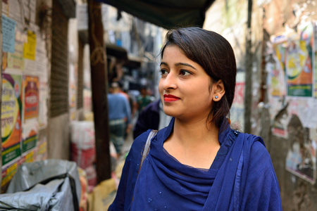 DHAKA, BENGAL BANGLADESH - 25 JANUARY 2019: Portrait of the beautiful resident of the capital city of Bangladesh on the neglected street of Dhaka