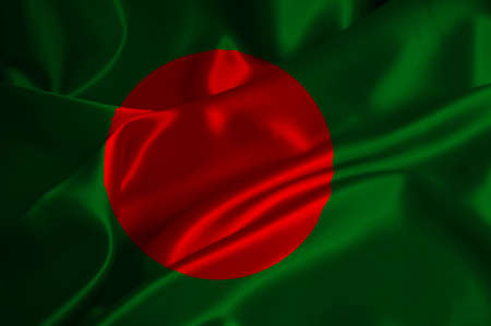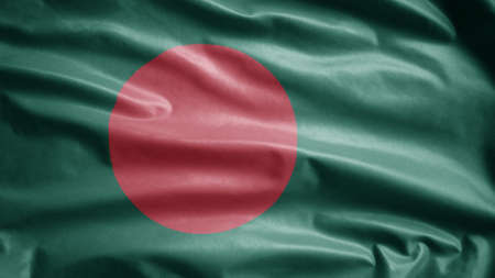Bangladeshi flag waving in the wind. Close up of Bangladesh banner blowing, soft and smooth silk. Cloth fabric texture ensign background.