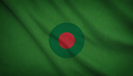 Flag of Bangladesh waving in the wind with detailed fabric texture. Bangladeshi national flag.