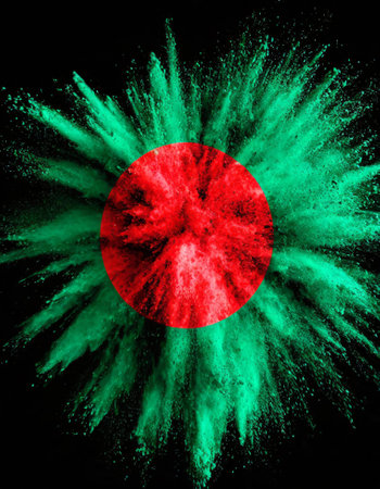 Bangladesh colorful flag holi paint powder explosion on isolated background, generated by AI. High quality photo