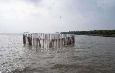 Seagulls and Bamboo in the sea.
