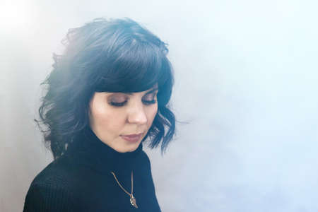 The young woman feels alone She has snow in her hair and a lot of sorrows in her beautiful face