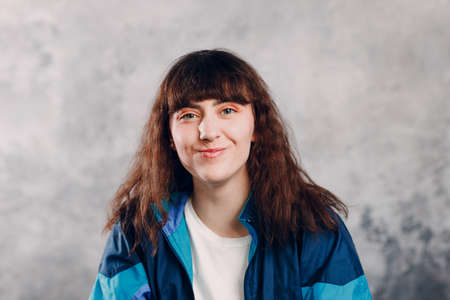 Young sporty woman 80 and 90s style. 90s fashion positive girl